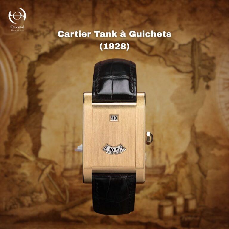 Cartier Tank à Guichets (1928): คือไอคอนที่แท้จริง หน้าปัดถูกปิดทึบด้วยโลหะมีค่า เหลือเพียงช่องหน้าต่างเล็กๆ สองช่อง นาฬิการุ่นนี้กลายเป็นเอกลักษณ์ประจำตัวของตำนานเพลงแจ๊สอย่าง Duke Ellington และยังคงเป็นหนึ่งในนาฬิกาที่นักสะสมทั่วโลกต้องการมากที่สุด