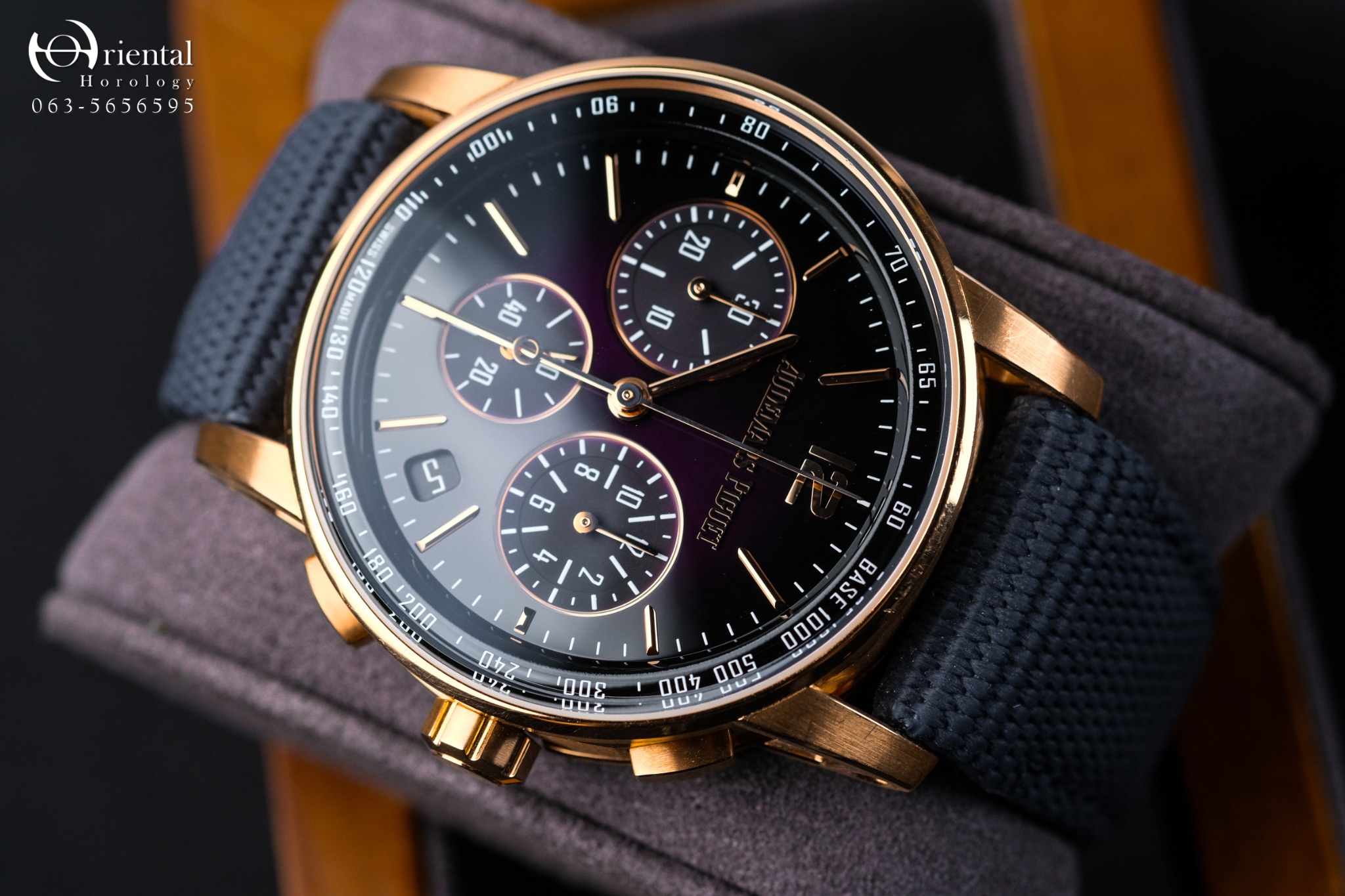 🌟 เรือนเวลาดีไซน์ทรงกลมสวยขึ้นข้อ ตัวเรือนมาในขนาด 41 มม รังสรรค์จากวัสดุ 18K Rose Gold หน้าปัดสี Purple ไล่เฉดแบบ Sunburst โดดเด่นด้วยหน้าปัดย่อย 3 วง ชุดเข็มและหลักบอกเวลาสี rose gold ซึ่งตัดกับพื้นหน้าปัดสีม่วงได้อย่างงดงาม มาพร้อมฟังก์ชัน Chronograph Flyback และ Date กลไก Automatic เปลือยหลังอวดกลไกสวยๆและ Rotor ทองคำ 22K แมทช์ง่ายสวมใส่ได้หลายโอกาสครับผม