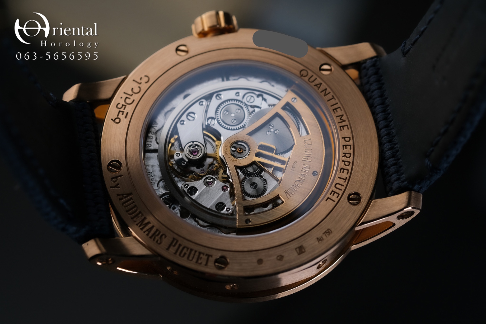 🌟 AP นาฬิกาแบรนด์ Top ของโลกกับตำนานแปดเหลี่ยมของ Gerald Genta ที่ได้ออกแบบนาฬิการุ่นนี้ให้มีรูปทรงตัวเรือนเป็นทรงกลมขัดบางๆ สวยสง่าด้วยขนาด 41 มม วัสดุ 18K Rose Gold สุดล้ำค่า หน้าปัดสี Blue Aventurine หรูหรา จำลองท้องฟ้ายามค่ำคืน โดดเด่นด้วยหน้าปัดย่อยและวง Moon phase ชุดเข็มและหลักบอกเวลาสี rose gold ซึ่งตัดกับพื้นหน้าปัดได้อย่างงดงาม อีกทั้งสายนาฬิกา Kevlar น้ำเงินเข้มเพิ่มความดูดีและให้ลุคที่ดูสุขุม กลไก Automatic เปลือยหลังอวดกลไกสวยๆและ Rotor ทองคำ 22K ครับผม