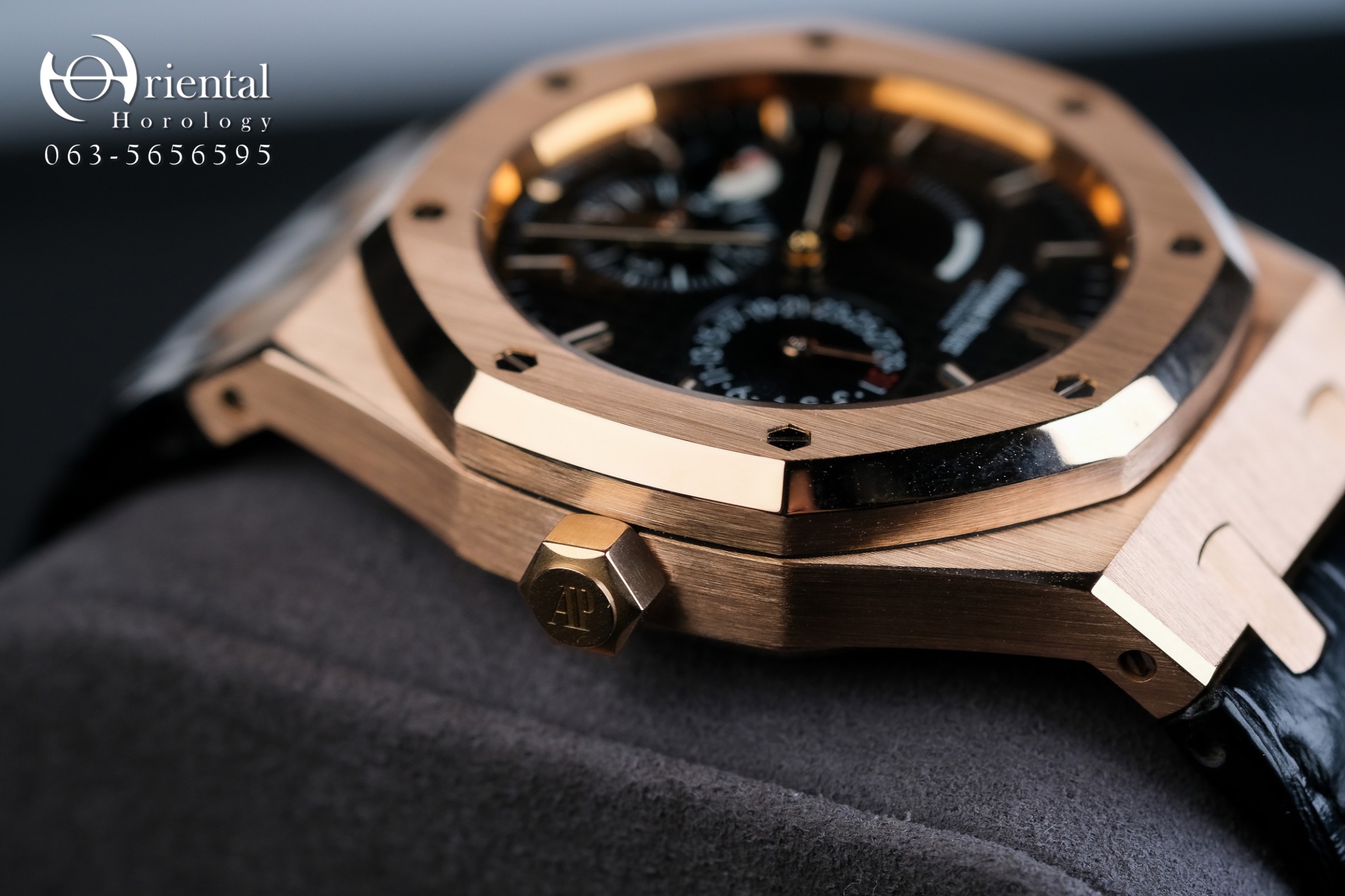 🌟 Luxuary Sport สุดหรู ตัวเรือนมาในขนาด 39 มม. วัสดุ 18K Rose Gold ทองคำตันๆสวยล้ำ ใส่ขึ้นข้อ มาพร้อมสายหนังจระเข้สีดำสุดภูมิฐาน เอกลักษณ์โดนเด่นตามสไตล์ AP ด้วยหน้าปัดแกะลาย Grand Tapisserie สีดำเข้ม ตัดกับวงหน้าปัดย่อยได้อย่างลงตัว มาพร้อมฟังก์ชัน Date , Power Reserve และ Dual Time หลังเครื่องสลักโลโก้แบรนด์ AP สวยงามครับผม