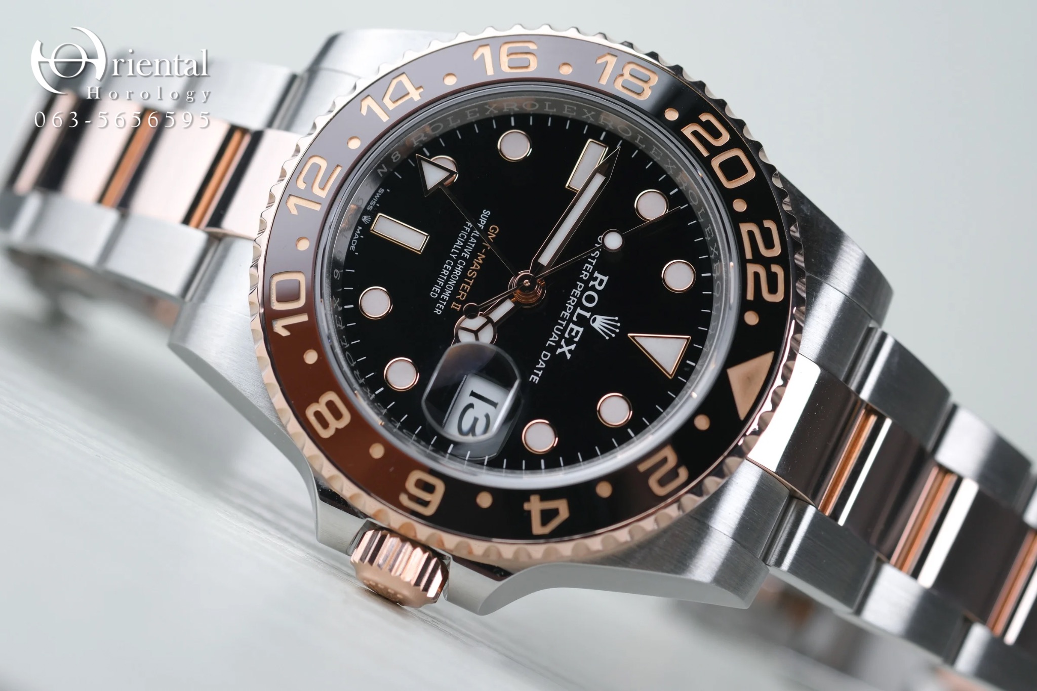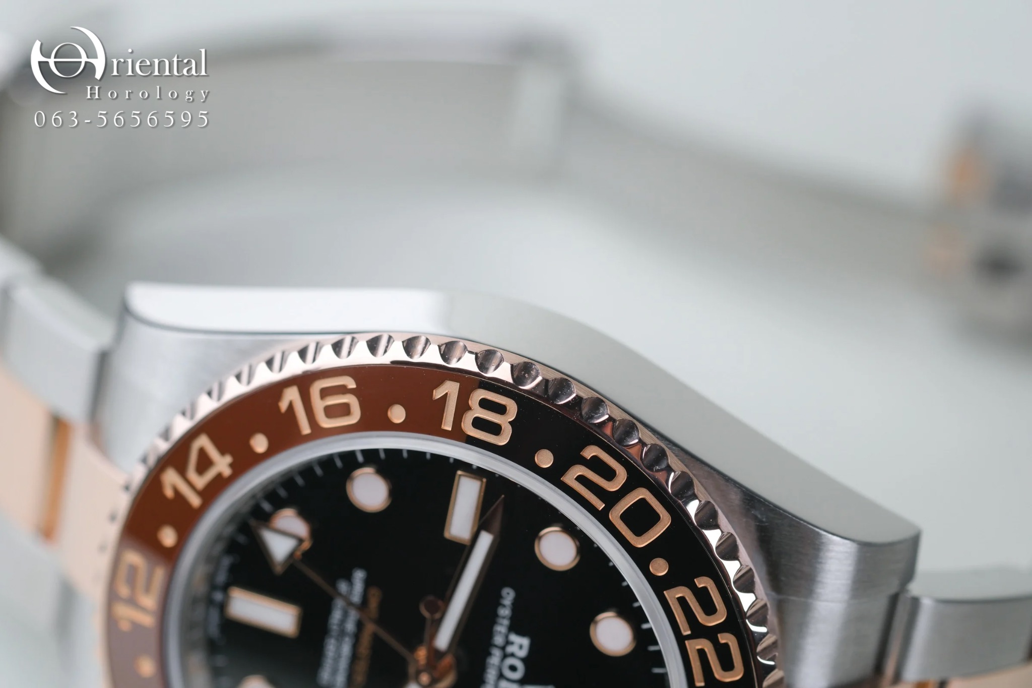 🌟 GMT Rootbeer Bezel ผสมผสาน 2 สี ดำ-น้ำตาล บนตัวเรือน ขนาด 40 mm วัสดุ 18K Everose Gold & Steel หน้าปัดสีดำเข้ม มาพร้อมฟังก์ชัน GMT บอกเวลา 2 ประเทศพร้อมกัน กลไก Automatic สวยสปอร์ตใส่ขึ้นข้อสุดๆครับ