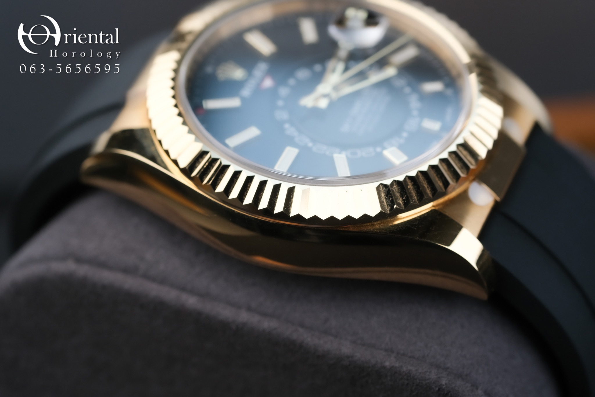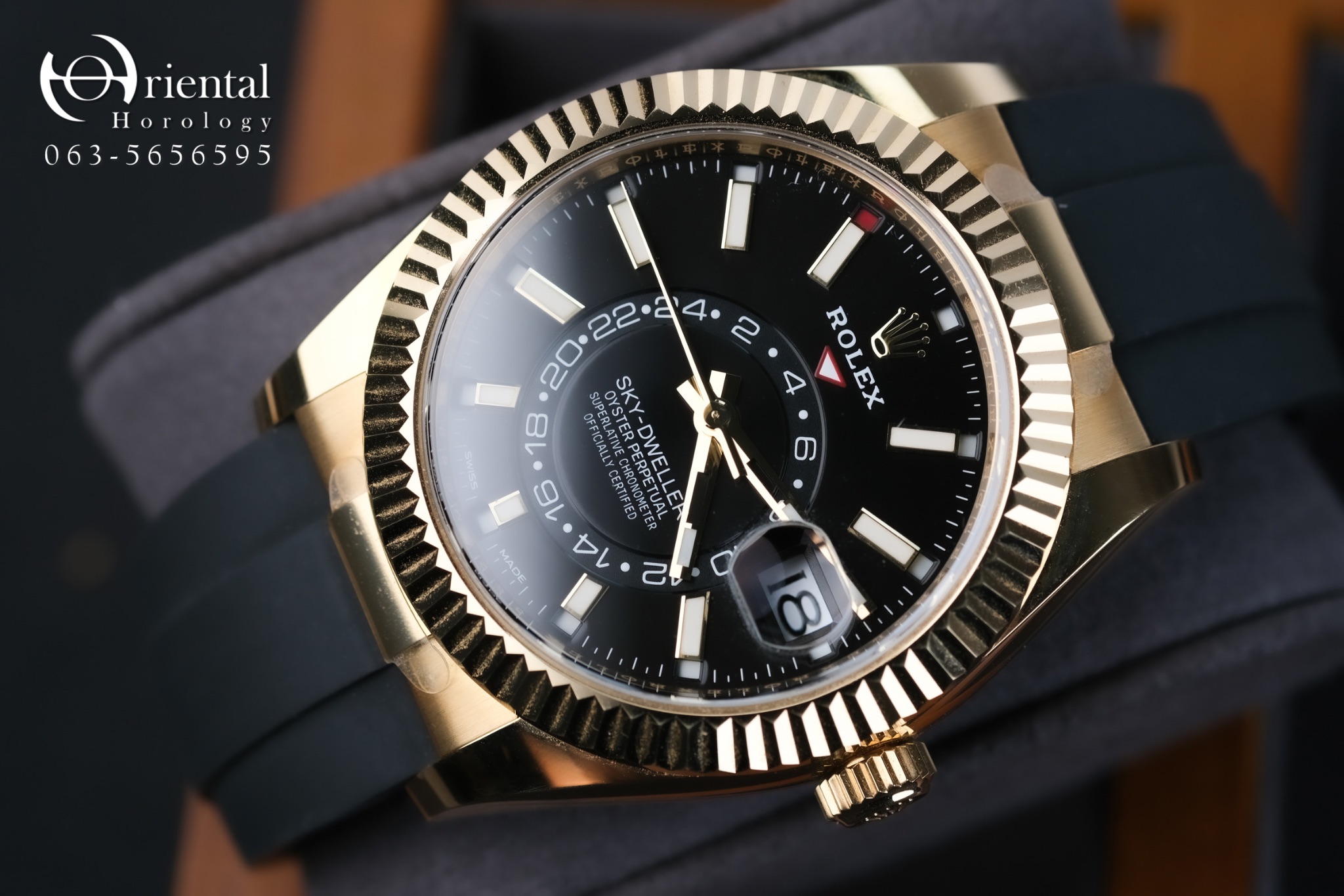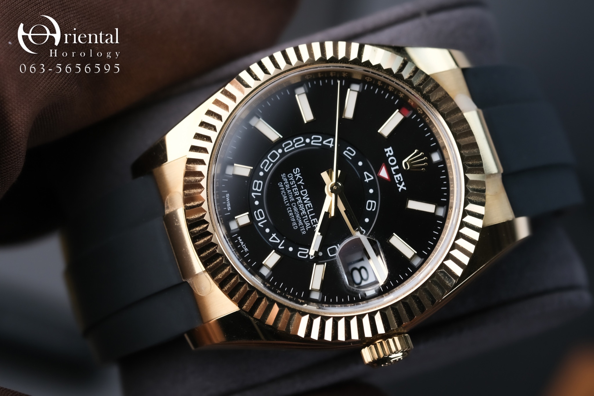 🌟 Sky-Dweller เรือนเวลาที่โดดเด่นนี้มาพร้อมด้วยคุณสมบัติพิเศษสามารถแสดงเวลาได้ 2 Time zone และมี Bezel แบบ Ring Command ซึ่งเป็นระบบนวัตกรรมของทางแบรนด์ ช่วยให้หมุนขอบเพื่อปรับตั้งค่าต่างๆได้อย่างดายและรวดเร็ว ตัวเรือนมาในขนาด 42 มม. วัสดุ Yellow Gold หน้าปัดสีดำเข้ากันกับสายและตัดกับสีตัวเรือน ทำให้เรือนนี้ใส่สวยขึ้นข้อสุดๆ มาพร้อมฟังก์ชัน Annaul Calendar และ GMT กลไก Automatic ครับ