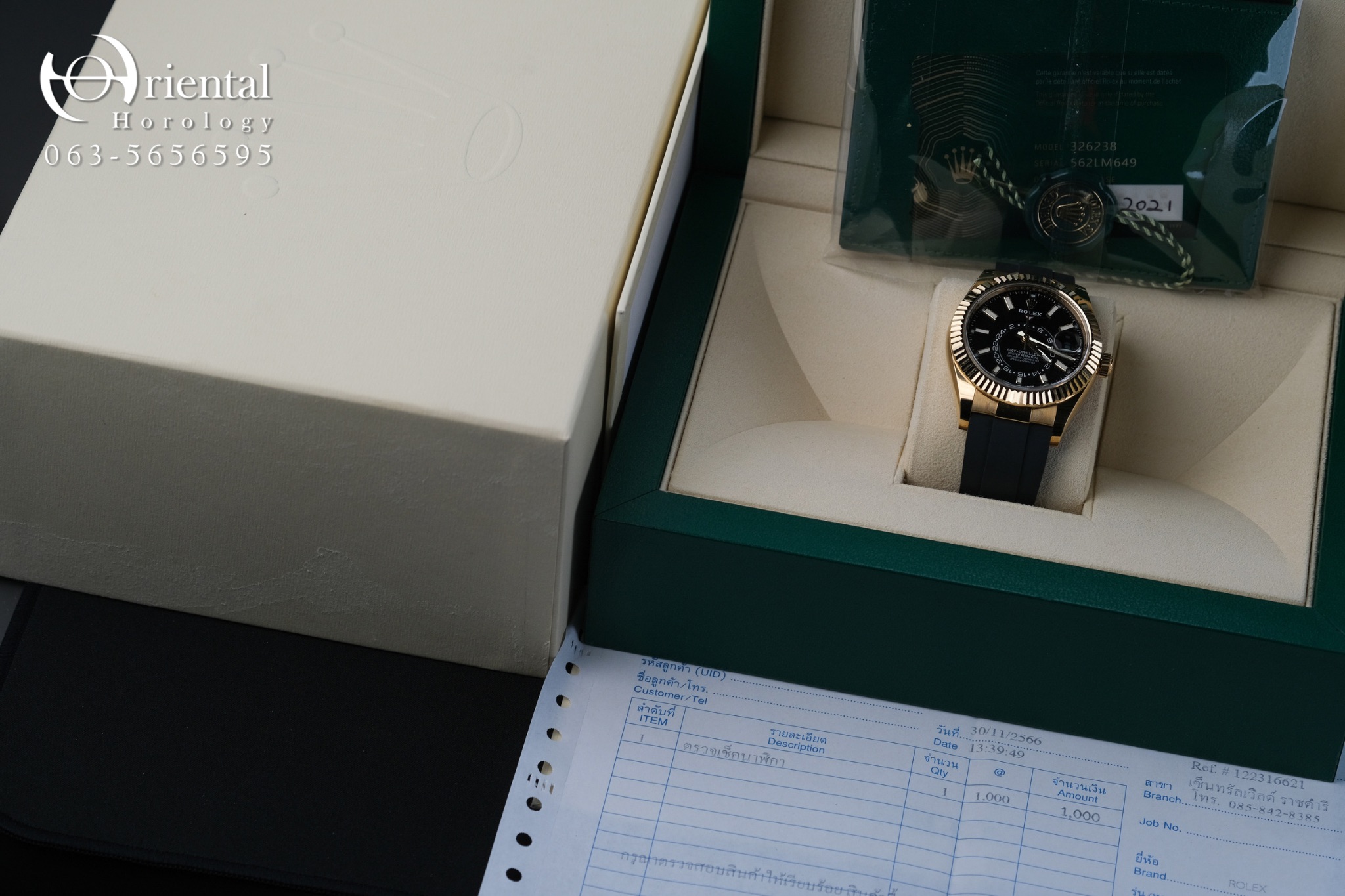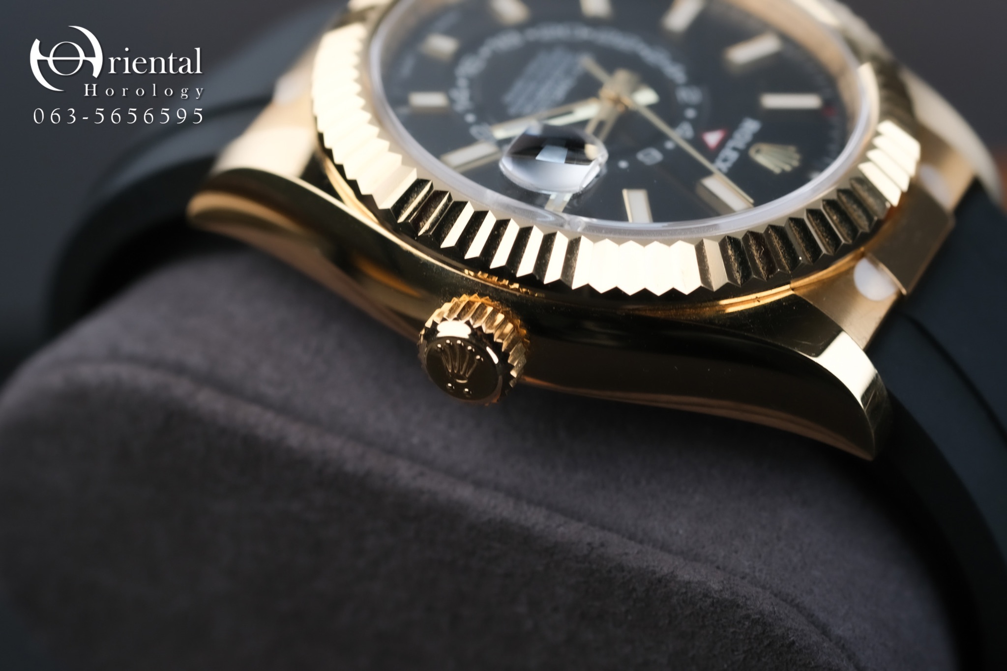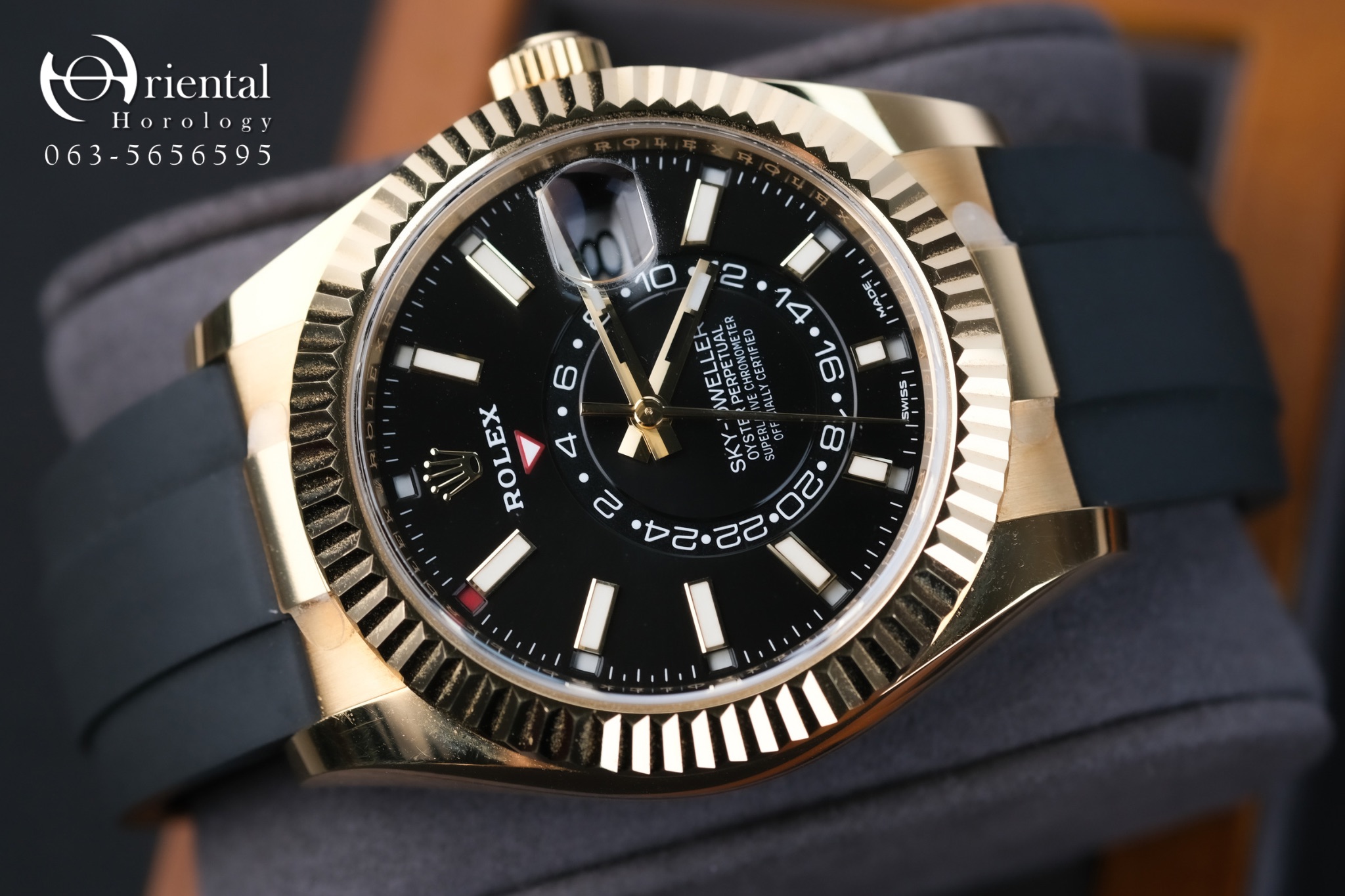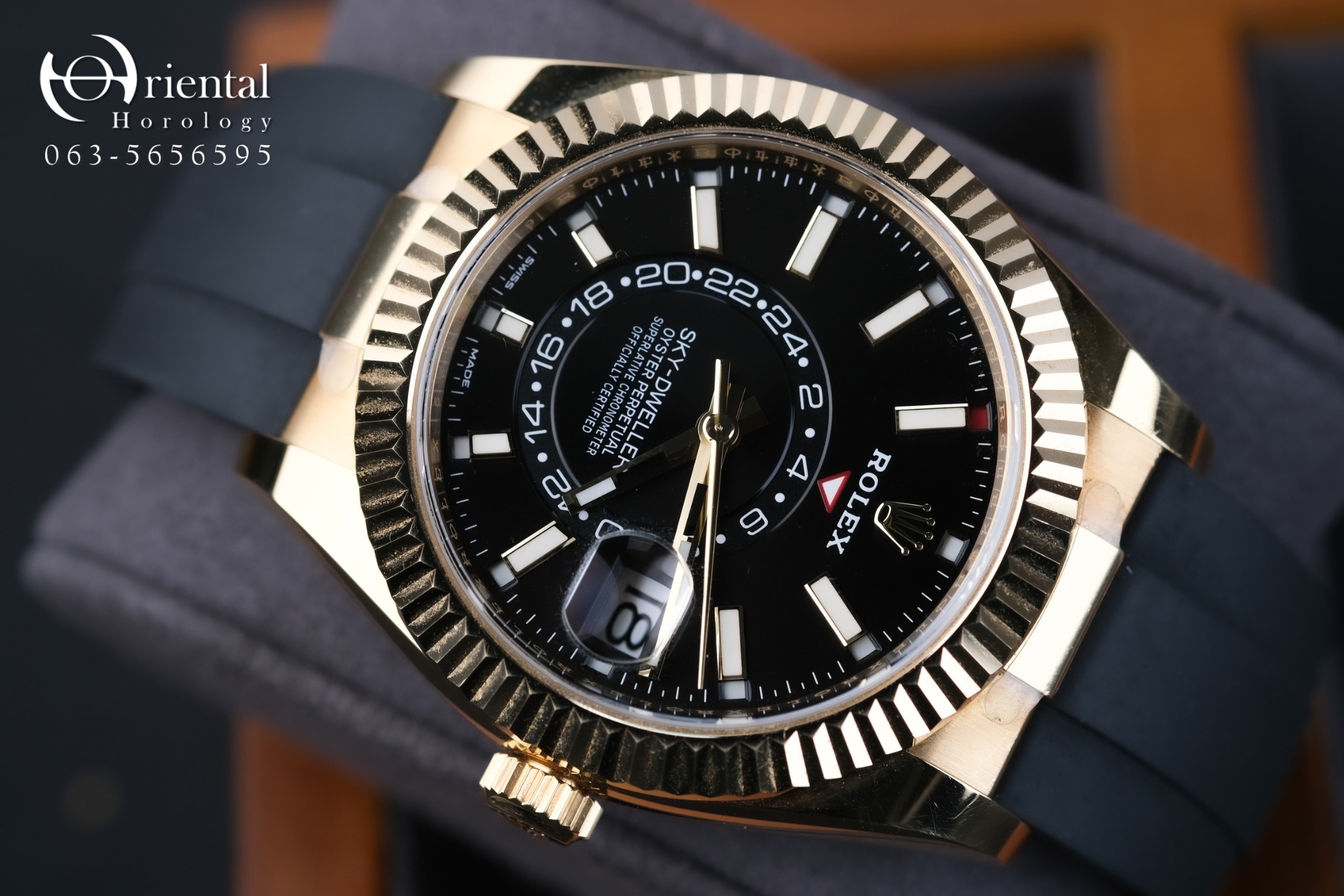 🌟 Sky-Dweller เรือนเวลาที่โดดเด่นนี้มาพร้อมด้วยคุณสมบัติพิเศษสามารถแสดงเวลาได้ 2 Time zone และมี Bezel แบบ Ring Command ซึ่งเป็นระบบนวัตกรรมของทางแบรนด์ ช่วยให้หมุนขอบเพื่อปรับตั้งค่าต่างๆได้อย่างดายและรวดเร็ว ตัวเรือนมาในขนาด 42 มม. วัสดุ Yellow Gold หน้าปัดสีดำเข้ากันกับสายและตัดกับสีตัวเรือน ทำให้เรือนนี้ใส่สวยขึ้นข้อสุดๆ มาพร้อมฟังก์ชัน Annaul Calendar และ GMT กลไก Automatic ครับ