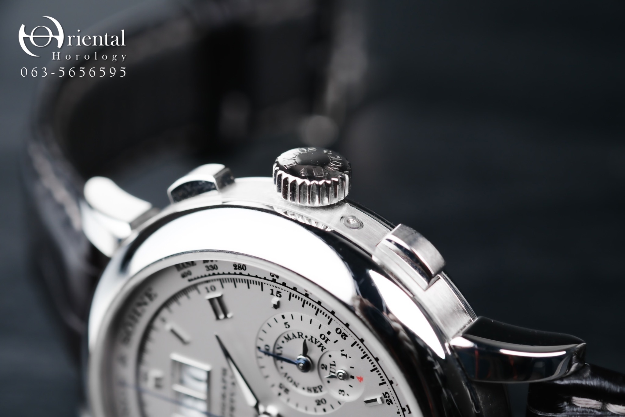 🌟 เรือนเวลา Platinum ตัวท็อปจากตระกูล Saxonia Watch มาในขนาด 41 mm. ครบเครื่องทั้ง Chronograph + Perpetual Calendar พร้อม Moon Phase และ Outsize Date อันเป็นเอกลักษณ์ เรียกว่าหน้าตาเนี๊ยบสุดๆ มาพร้อมกลไกไขลาน Cal. L952.1 สุดงดงาม หน้าปัดสี German Silver มีมิติ งานละเอียดมาก กันน้ำ 30 เมตรครับผม