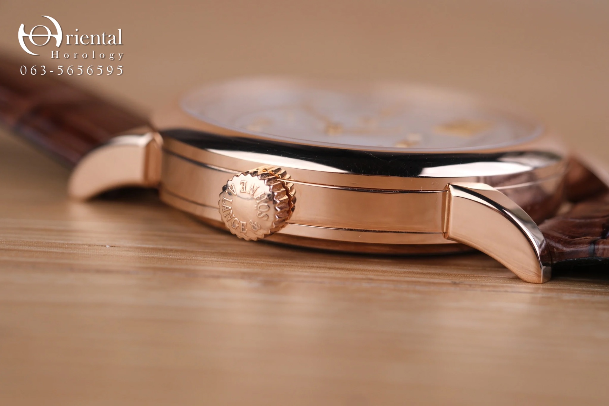 🌟 เรือนเวลา High Watchmaking แบบเยอรมันแท้ มาในตัวเรือน 18K Pink Gold ขนาด 39.5 mm. ดีไซน์ Off-centre อันเป็นเอกลักษณ์ มาพร้อม Big Date และวันแบบ Retrograde ขับเคลื่อนด้วยกลไก Automatic In-House สำรองพลังงานประมาณ 50 ชั่วโมง ฝาหลังใสโชว์งานกลไกที่ประกอบและตกแต่งด้วยมือทุกชิ้นส่วน บอกเลยว่าสวยและคลาสสิคมากๆ เหมาะสำหรับนักสะสมทุกท่านครับ