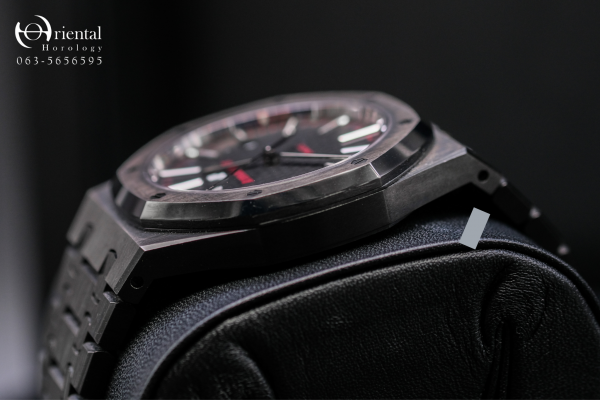 🌟ตัวเรือนเป็นวัสดุ Steel จาก AP ลง DLC สีดำติดแน่นทนทานมากครับ สีหลุดหรือไม่เสมอสามารถติดต่อไปทำซ้ำที่ MAD ได้เลยครับ หน้าปัดขนาด 41mm สีดำรับตัวเรือนตัดด้วยฟอนท์สีแดงเสริมความสปอร์ต