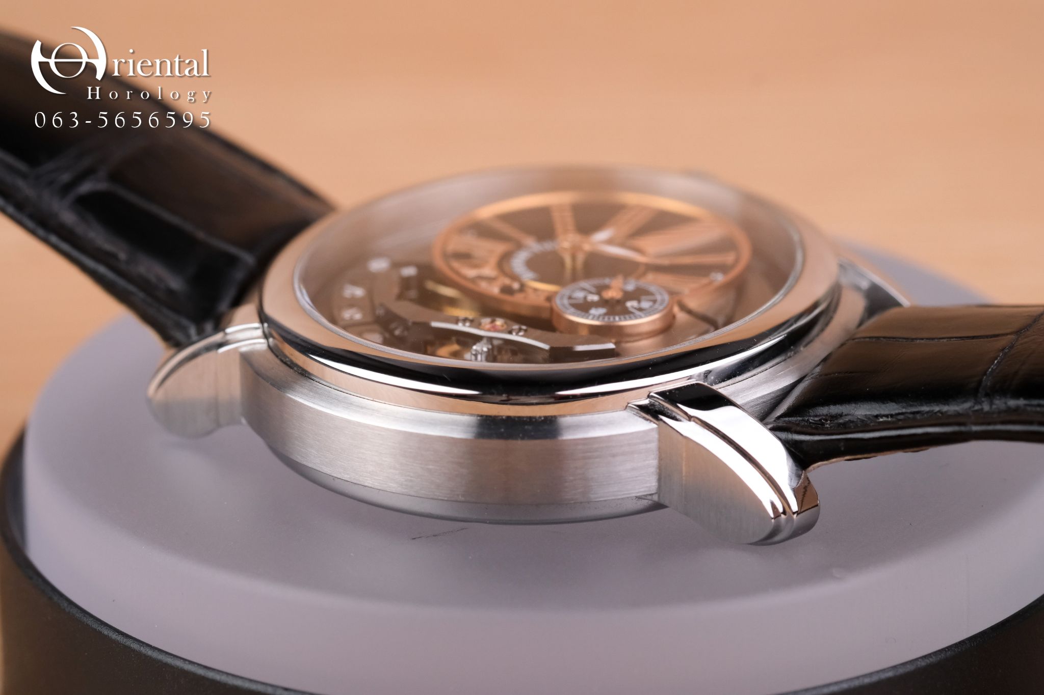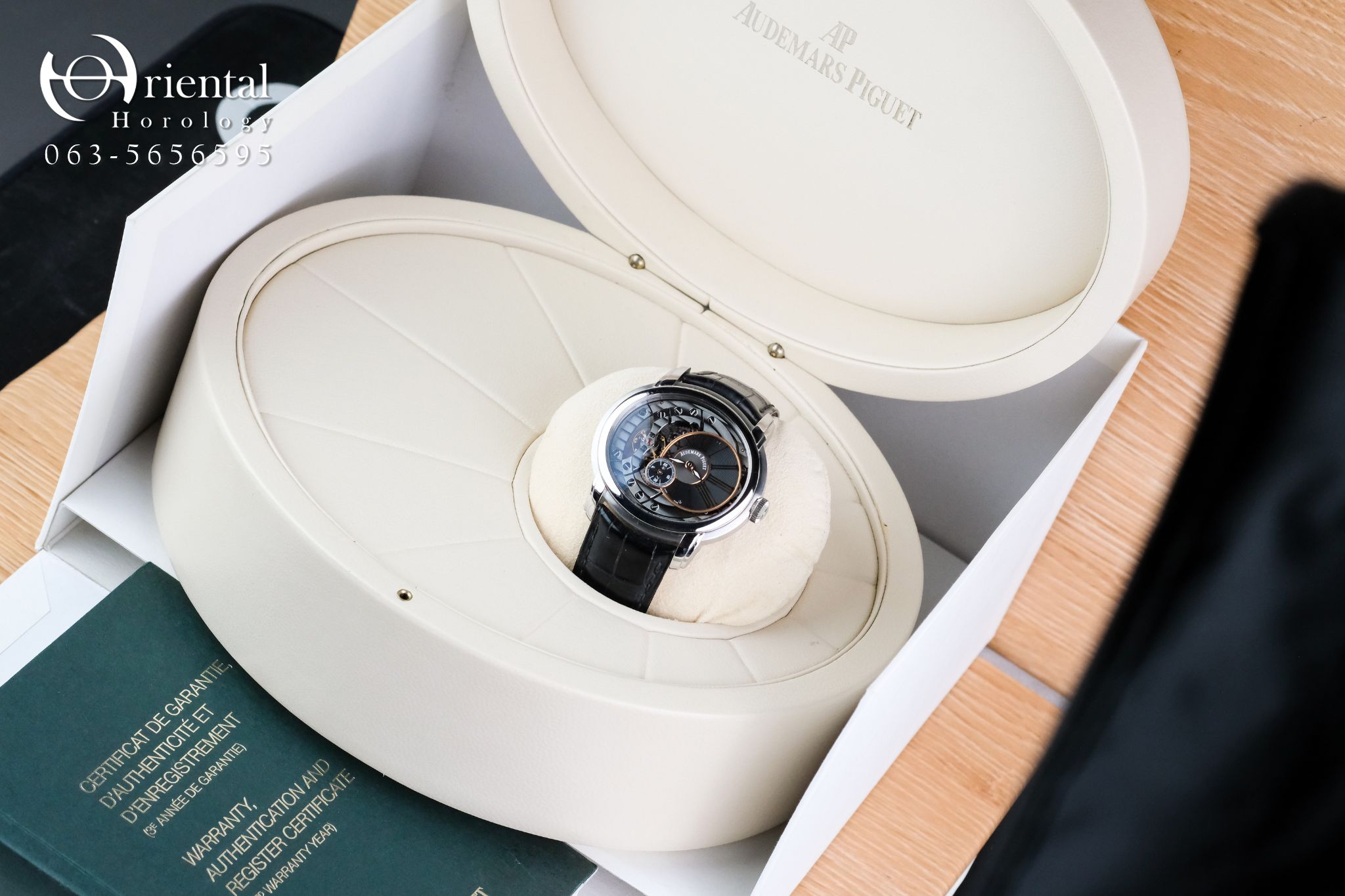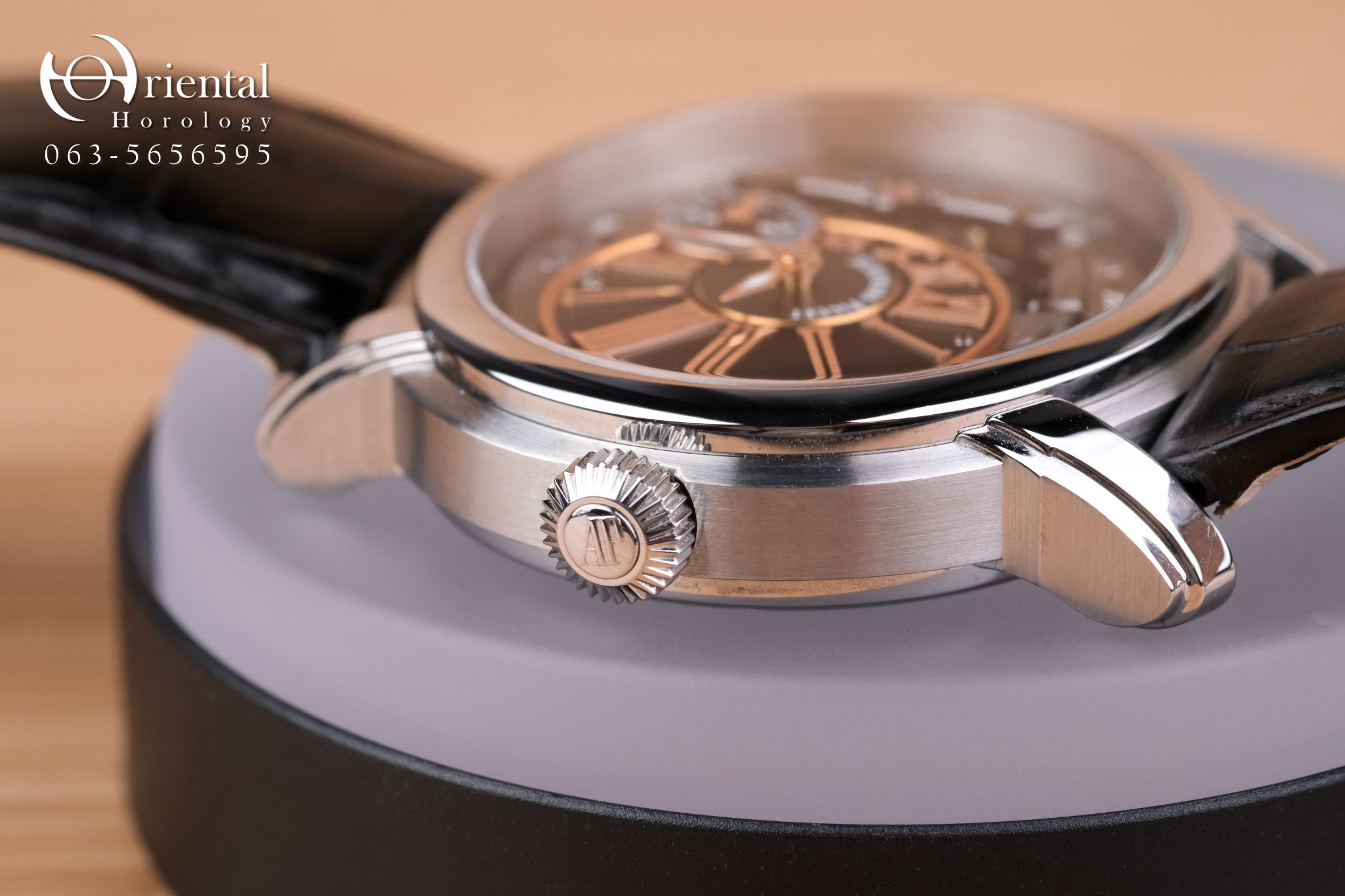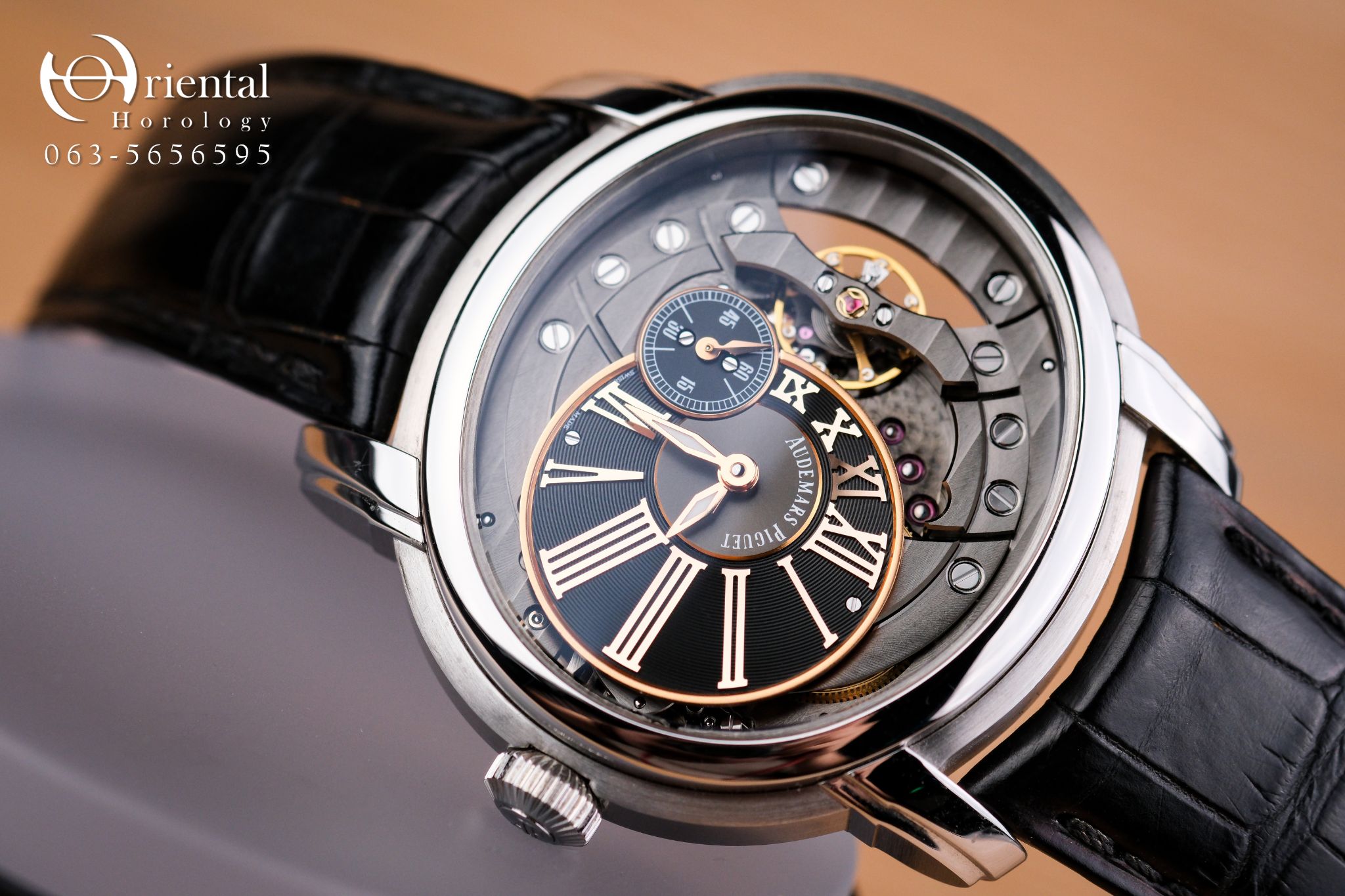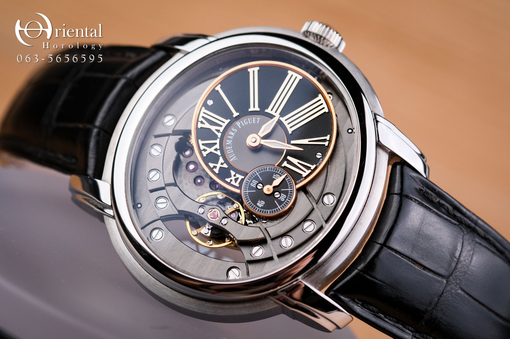 🌟 Millenary 4101 โดดเด่นด้วยทรงรีสุดคลาสสิก หน้าปัด Skeleton โชว์กลไก 3 ชั้นแบบมีมิติ พื้นดำแกะลายกิโยเซ่ เสริมด้วยเลขโรมัน Rose Gold มาในขนาด 47 x 43 mm ตัวเรือนสตีล สายหนังจระเข้สีดำ ดีไซน์ผสมความหรูและสปอร์ตได้อย่างลงตัว เหมาะทั้งใส่ออกงานและลุยหรูในชีวิตประจำวัน จัดเป็นงานศิลป์ระดับ Masterpiece จาก AP ครับผม