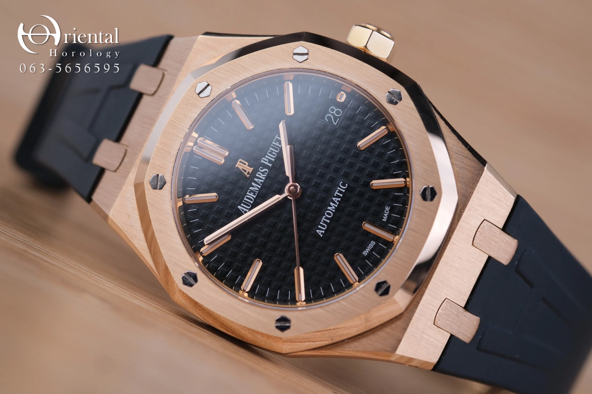 🌟 ตระกูล Royal Oak มาในขนาดคลาสสิก 37 mm. ใส่ง่ายทั้งคุณผู้หญิงและคุณผู้ชาย ตัวเรือน 18K Rose Gold จับคู่มากับสายยาง สวยสปอร์ต ขับเคลื่อนด้วยกลไก Automatic In-House สำรองพลังงานยาวๆ 60 ชม. มาพร้อมฟังก์ชัน Date ตอบโจทย์การใช้งาน ละเอียดทั้งดีไซน์และฟังก์ชัน เหมาะสำหรับท่านที่อยากได้ทั้งความหรูหรา และ ความคลาสสิก สวมใส่ขึ้นข้อได้หลากหลายโอกาสครับ