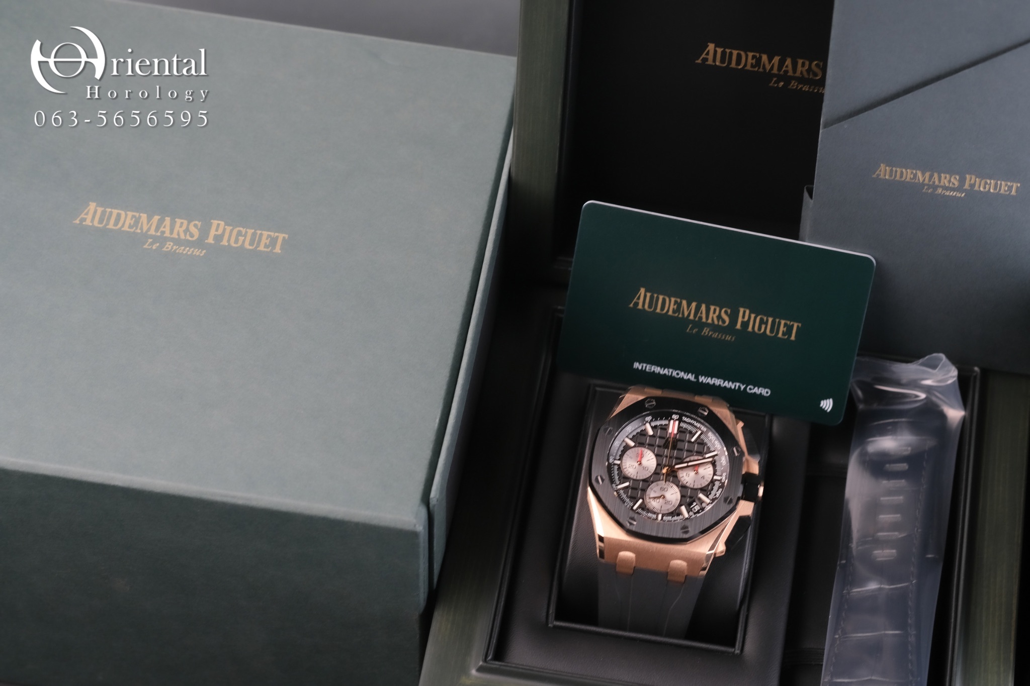 🌟 นาฬิกาสปอร์ตเหนือระดับ ตัวเรือนทรงแปดเหลี่ยมมาในขนาด 43 mm. วัสดุ Rose gold ขอบหน้าปัด Ceramic สีดำดูเท่ห์ ใส่สวยขึ้นข้อ หน้าปัดแกะลายตารางขนาดใหญ่เอกลักษณ์ของ AP พื้นหลังสีดำพร้อมชุดเข็มสีแดงสด และสายยาง Rubber สีดำเท่ๆ เพิ่มความสปอร์ตเป็นเท่าตัว มาพร้อมฟังก์ชัน Date และ Chronograph กลไก Automatic เปลือยหลังโชว์กลไกสุดประณีตครับผม