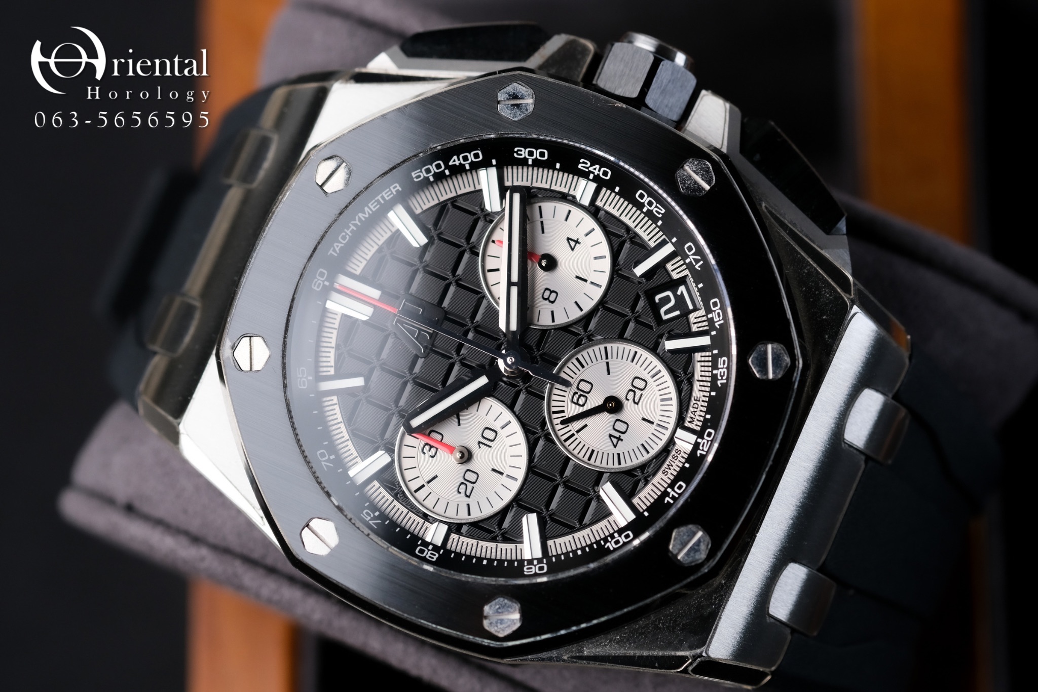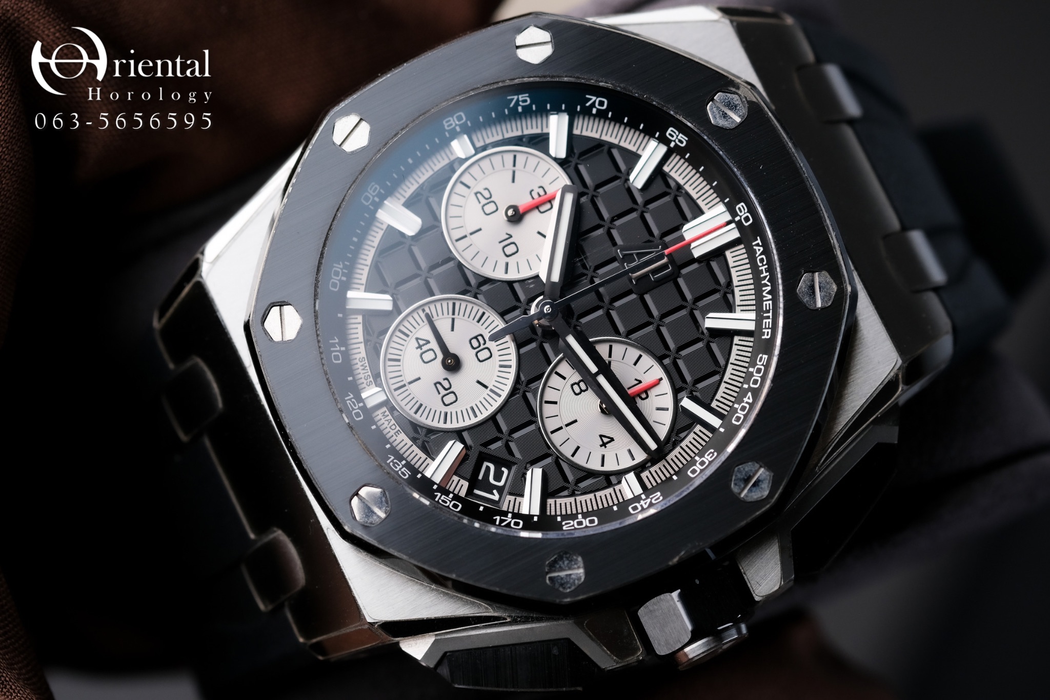 🌟 นาฬิกาสปอร์ตเหนือระดับกับแบรนด์ตัวท็อปของโลก ตัวเรือนทรงแปดเหลี่ยมมาในขนาด 43 mm. วัสดุ Steel ขอบหน้าปัด Ceramic สีดำดูเท่ห์ ใส่สวยขึ้นข้อ หน้าปัดแกะลายตารางขนาดใหญ่เอกลักษณ์ของ AP พื้นหลังสีดำพร้อมชุดเข็มสีแดงสด และสายยาง Rubber สีดำเท่ๆ เพิ่มความสปอร์ตเป็นเท่าตัว มาพร้อมฟังก์ชัน Date และ Chronograph กลไก Automatic เปลือยหลังโชว์กลไกสุดประณีตครับผม