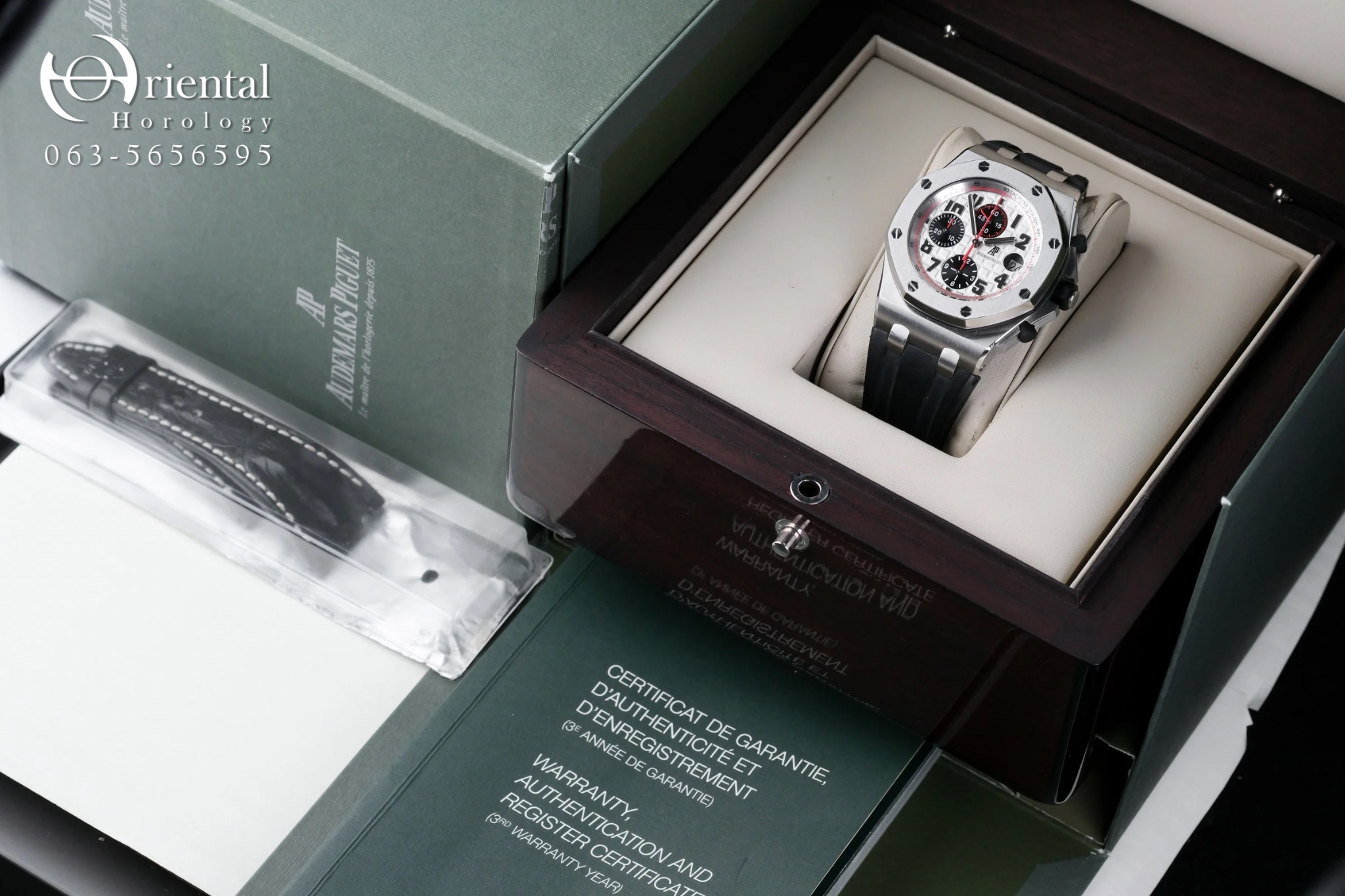 🌟 Offshore สุดสปอร์ตรุ่นฮิตขนาด 42 mm. หน้าปัด Panda ตัดด้วยแดงสุดคูล มาพร้อมสายยางดำ ฟังก์ชันครบๆ Date และ Chronograph กลไก Automatic แต่งตัวง่าย ใส่แล้วหล่อจัดๆครับ