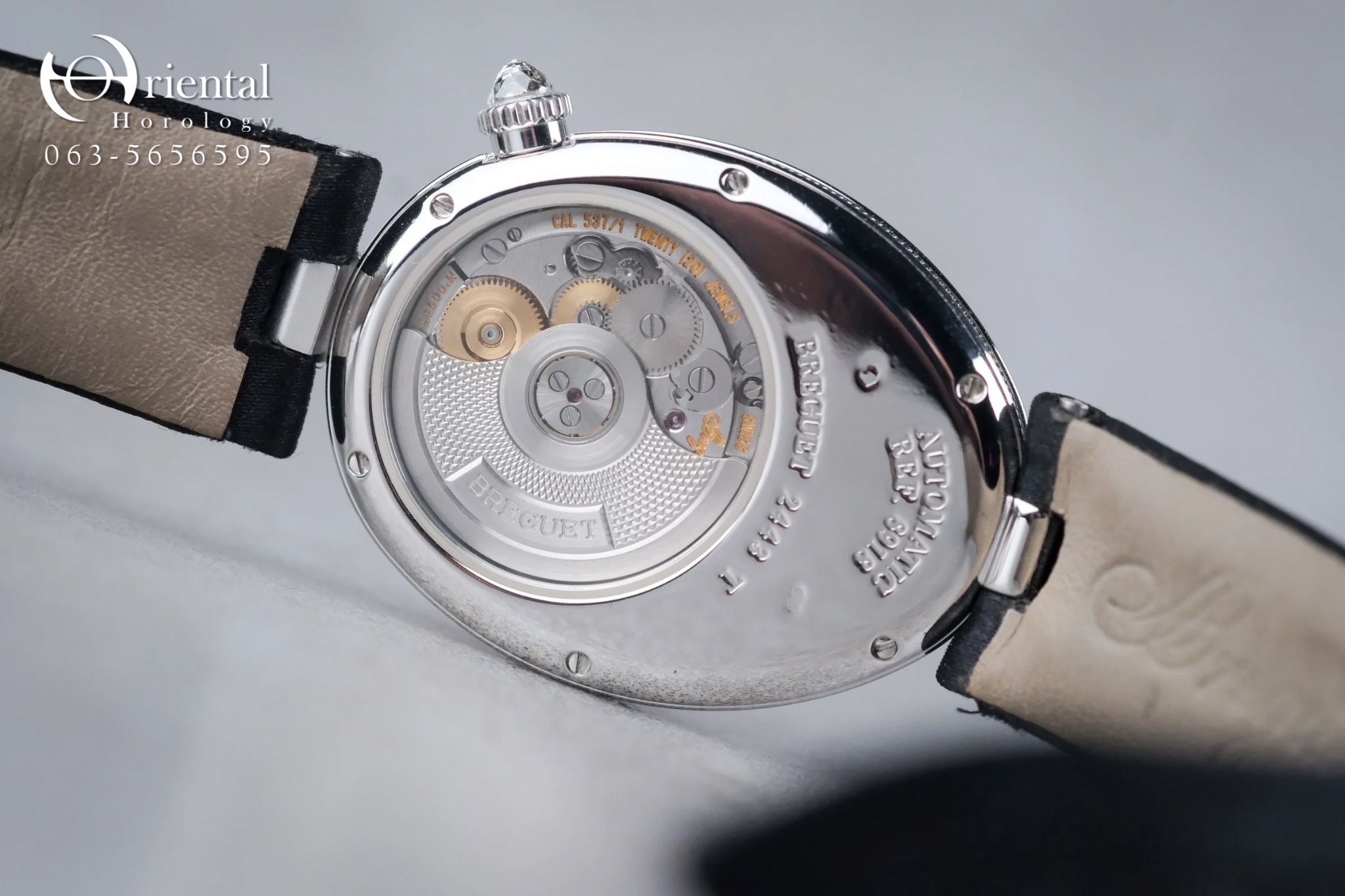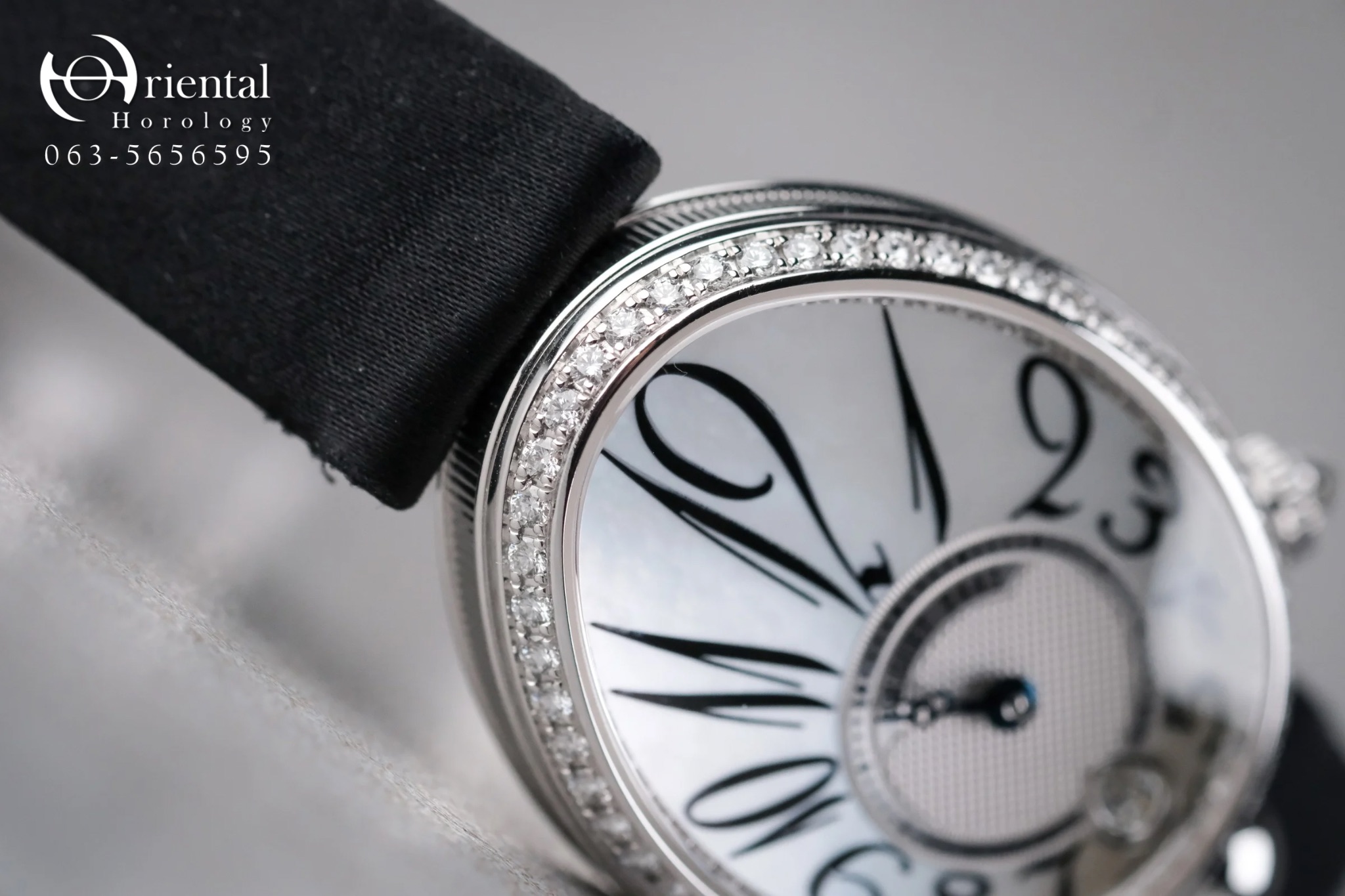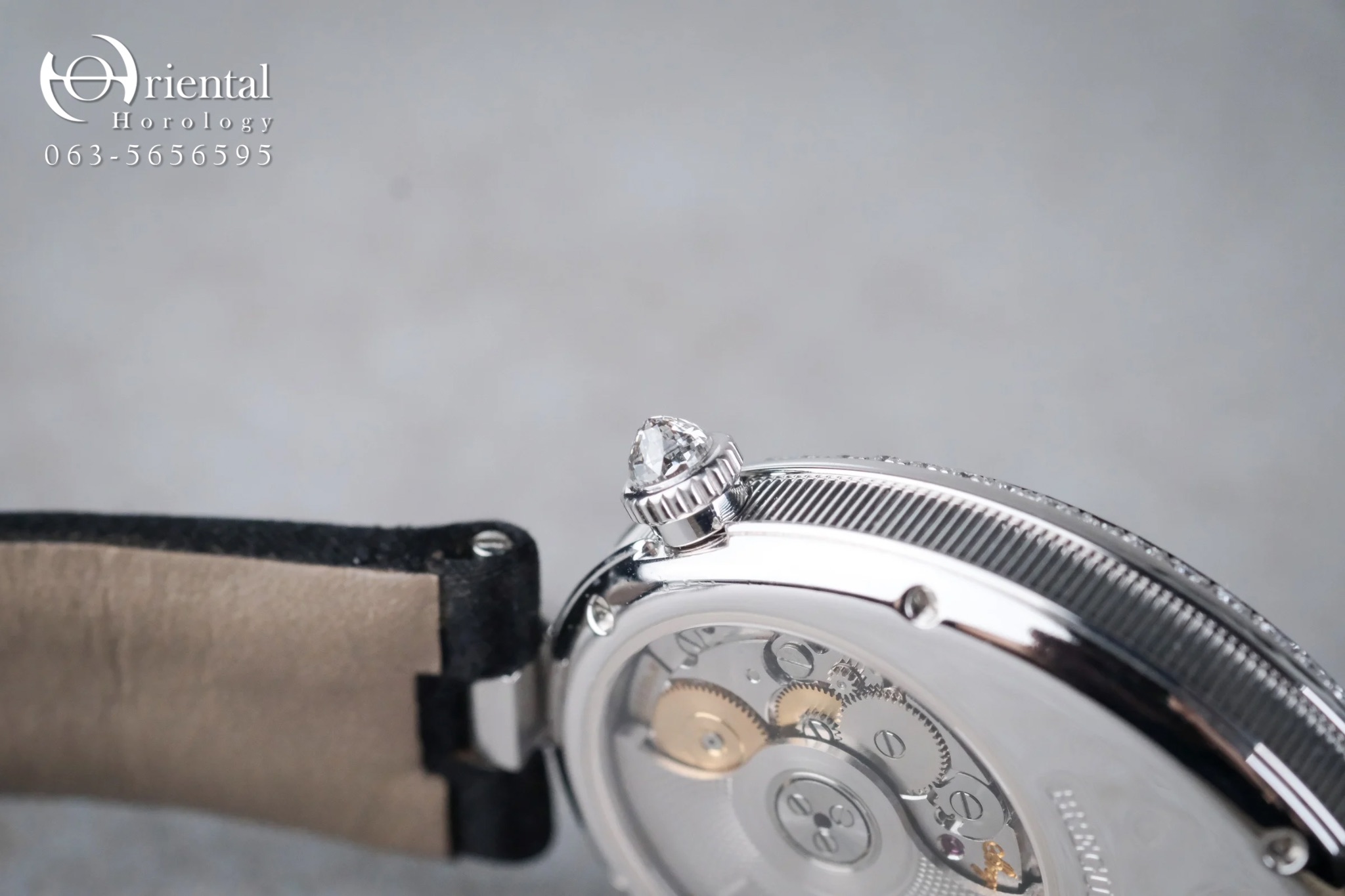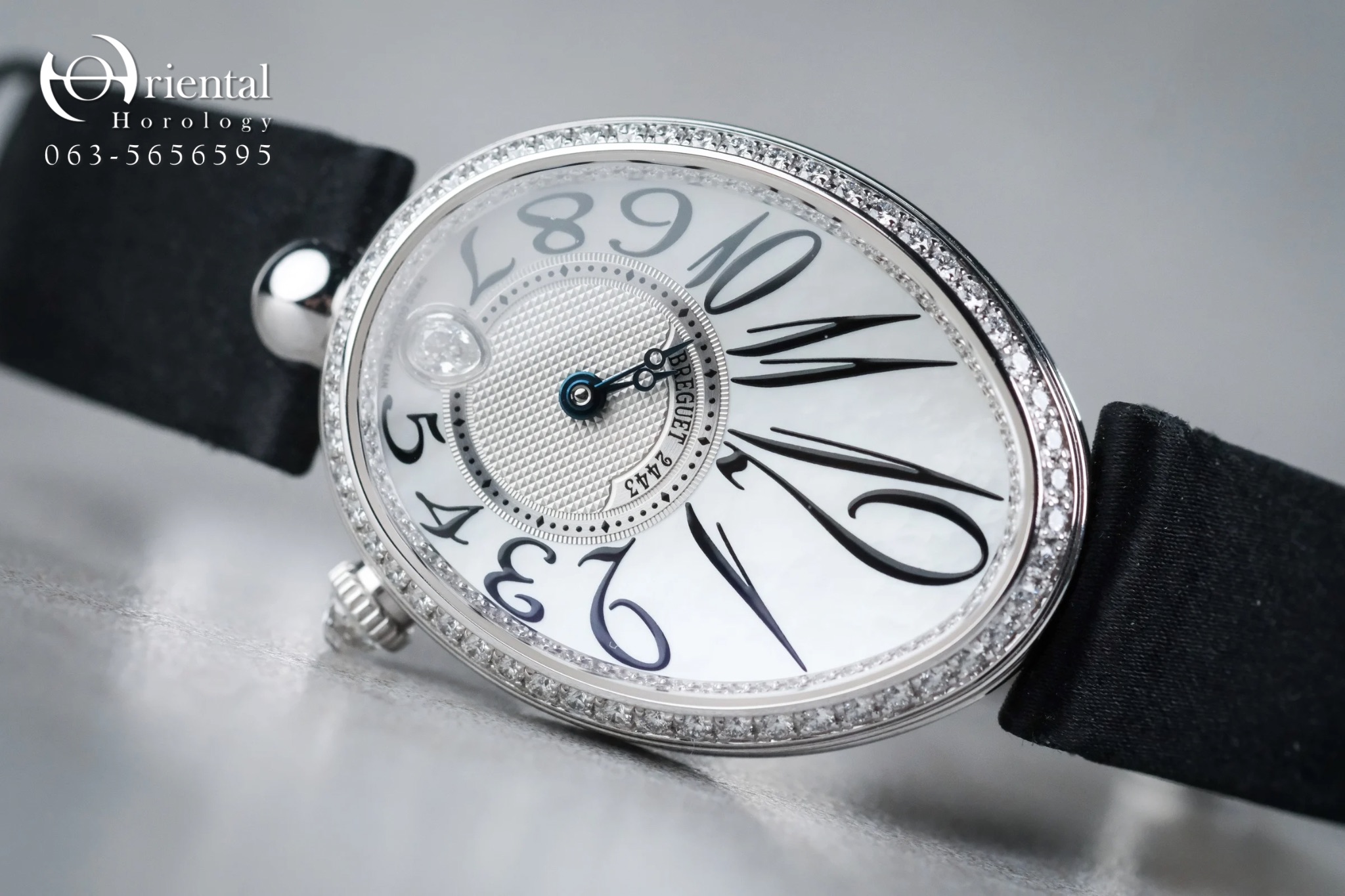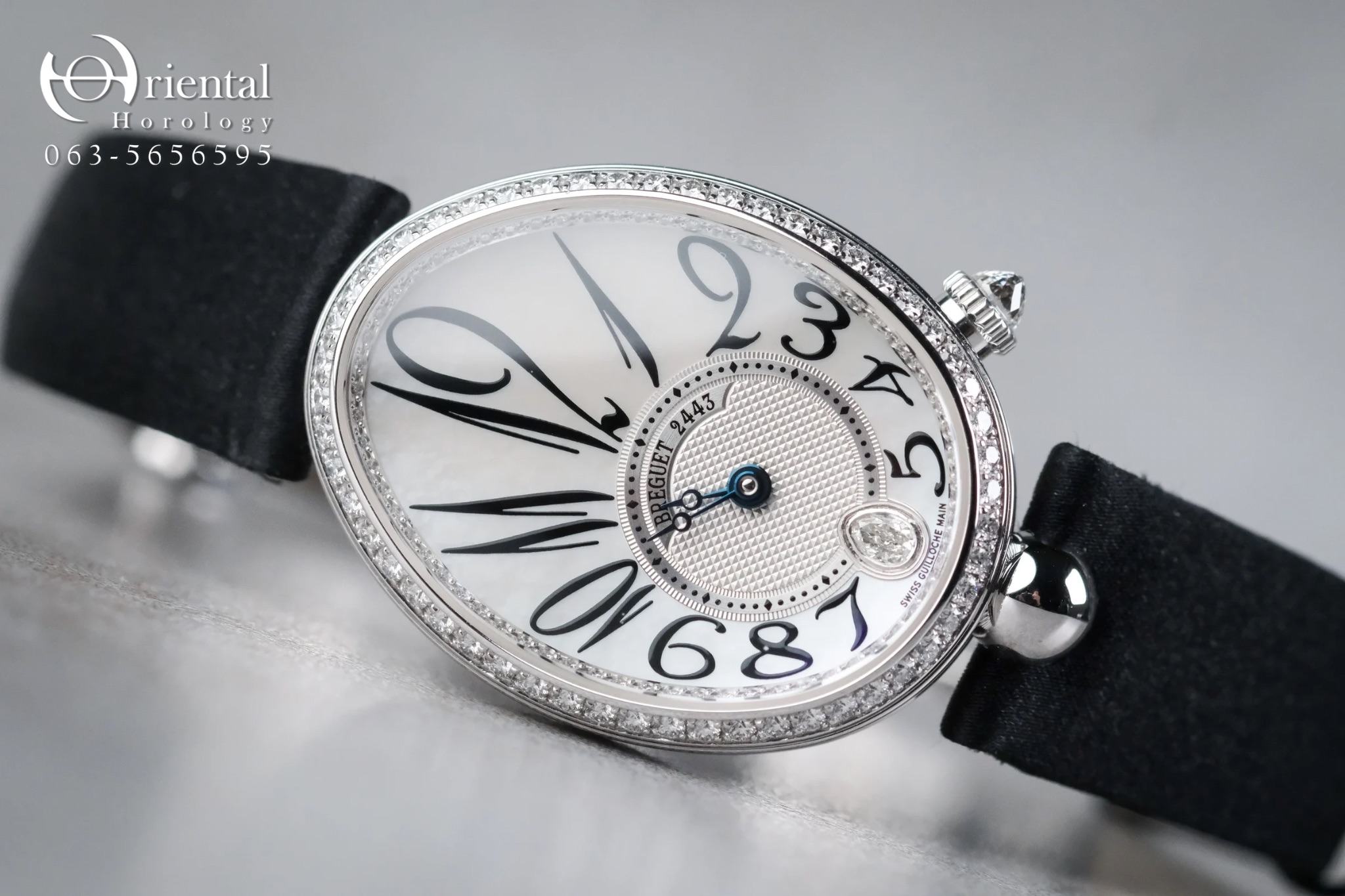 🌟 นาฬิกาข้อมือสำหรับผู้หญิงรุ่นแรกของโลกโดยถูกออกแบบโดย A-Louis Breguet ให้กับราชินี Caroline หรือน้องสาวของ Napoleon เคสทรง Ovoid วัสดุทองคำขาว ประดับด้วยเพชรน้ำงามทั้งเล็กและใหญ่รอบๆตัวเรือน และหน้าปัดมุขเขียนฟอนท์ Breguet อันเป็นเอกลักษณ์ เป็นเรือนเวลาที่รวมที่สุดของวัสดุล้ำค่าไว้ในเรือนเดียวสมกับเป็นนาฬิกาของราชินีอย่างแท้จริง ด้านหลังเปลือยโชว์เครื่อง automatic มาพร้อมอุปกรณ์กล่องใบครบๆ Full-set ครับ
