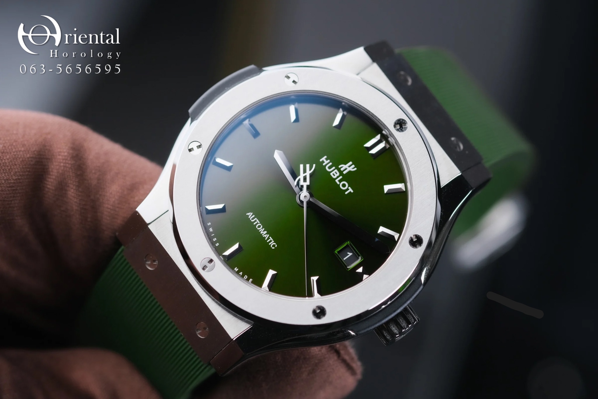 🌟 รุ่นนี้มาในขนาด 42 mm ใส่สวยกำลังพอดีข้อแบบเท่ห์ๆ ให้ลุคที่ทั้งดูสปอร์ตและเรียบง่ายไปในตัว วัสดุตัวเรือนทำจาก Titanium ที่มีการขัดพื้นผิวซาตินและขัดเงา น้ำหนักเบาสบายแต่ทนทานครับ มาพร้อมหน้าปัดสี Green Sunray ที่เล่นแสงสุดๆ และสายยางสี Deep Green สวมใส่สบาย มาพร้อมกลไก Automatic สำรองพลังงาน 42 ชม. แต่งตัวง่ายแมทช์ได้หลายโอกาสครับผม