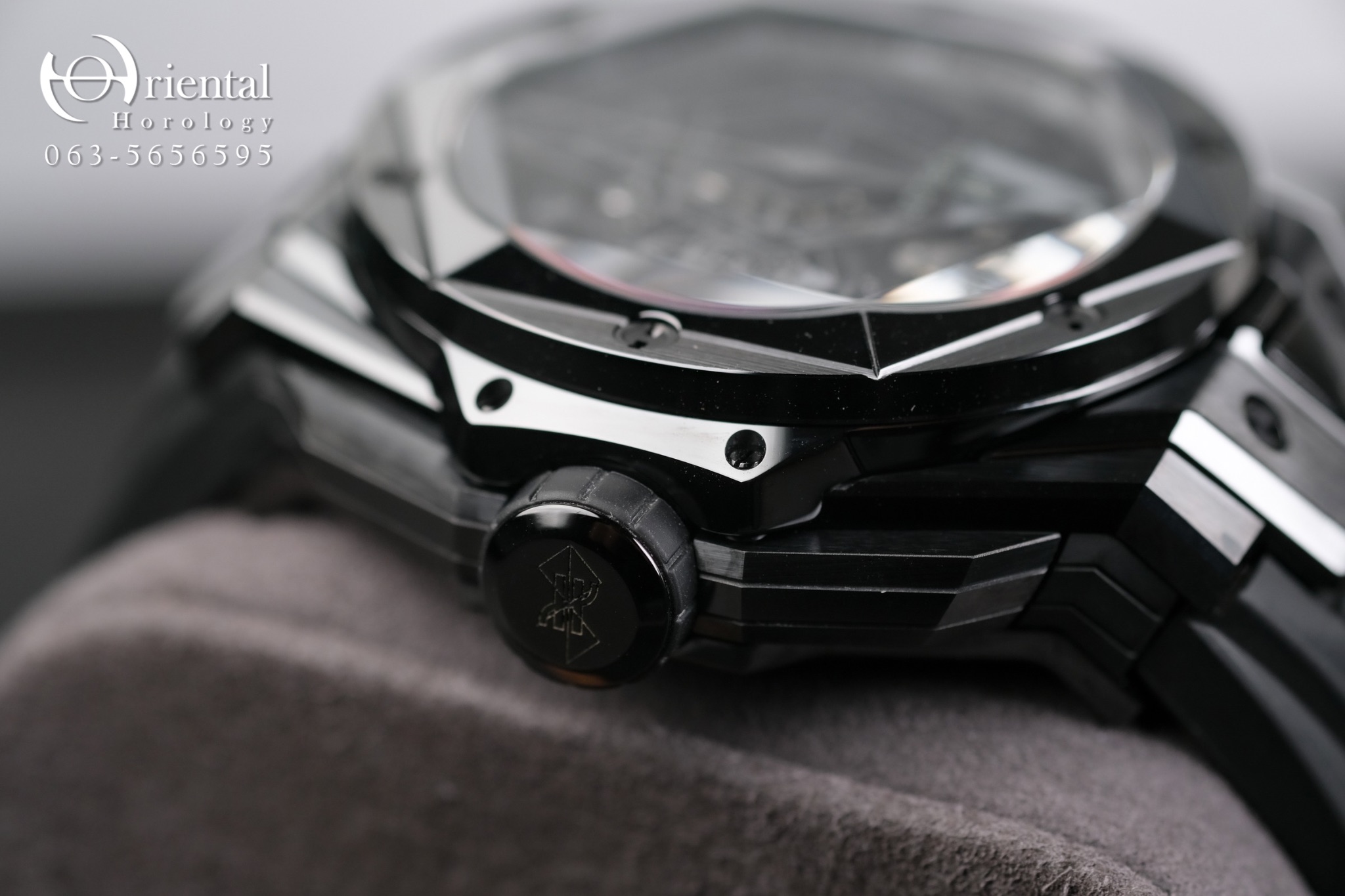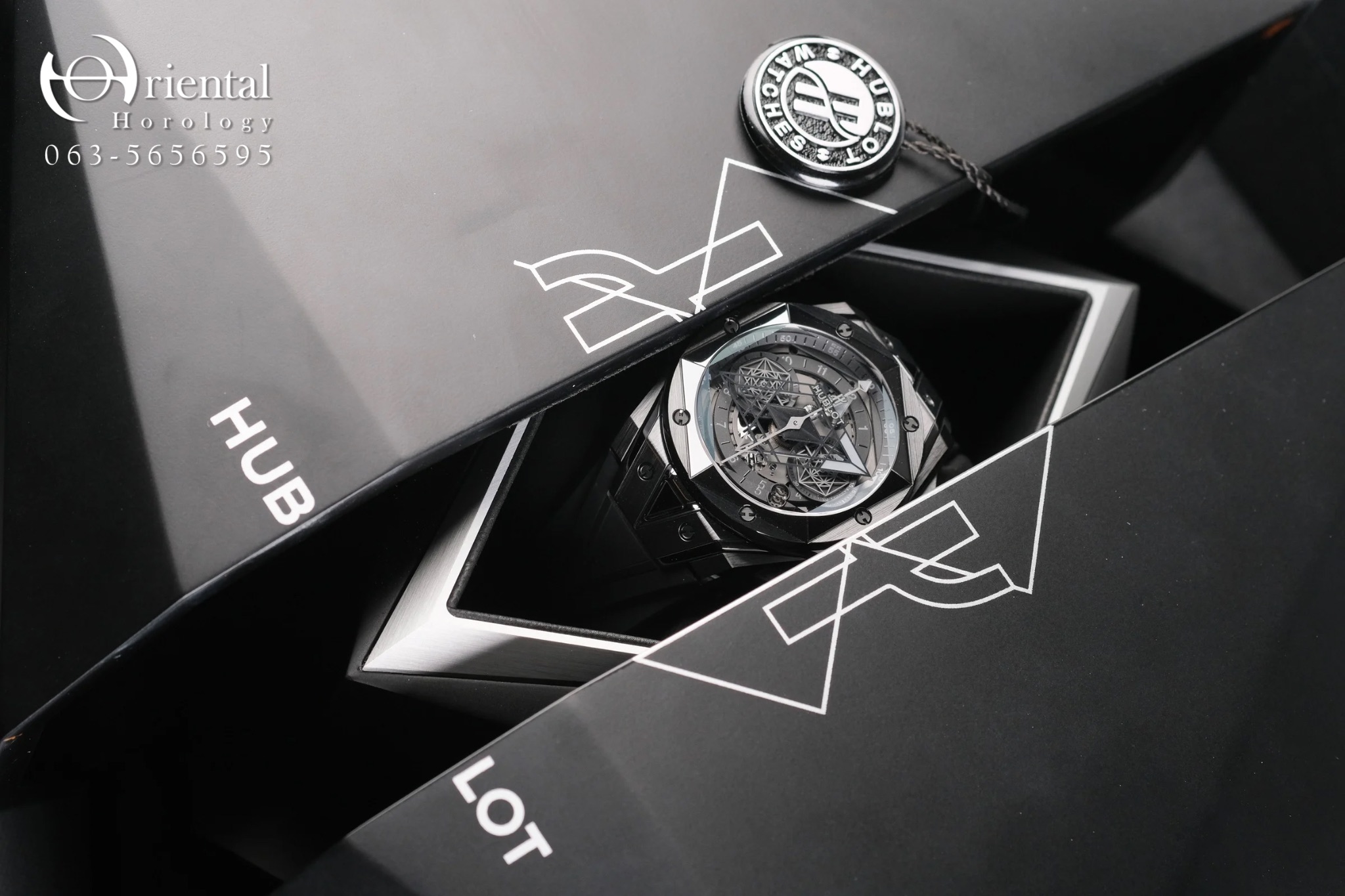 🌟 Sang Bleu Limited Edition เรือนเวลาแห่งการเฉลิมฉลองให้กับการร่วมมือกันระหว่าง Hublot X Sang bleu เข้าปี่ที่ 7 Sang Bleu หรือ Creative Art Studio สัญชาติอังกฤษที่โดงดังในการสักลายระดับ Ultra Hi-end ขี้นชื่อเรื่องการออกแบบที่ใช้รูปทรงเลขาคณิตมาซ้อนกันจนเกิดเป็นลวดลายที่สง่าสงามโดดเด่นเฉพาะตัว Limited รุ่นนี้ถูกสร้างมาเพียง 200 เรือนทั่วโลกเท่านั้น วัสดุทำมาจาก Ceramic สีดำหล่อเท่โคตรดุดัน รูปทรงโดดเด่นเฉพาะตัว หน้าปัดขนาด 45mm โชว์กลไกและเข็มอันสวยงามภายใน ฝาหลังเปลือยโชว์ Rotor รูปทรงสะดุดตา มาพร้อมเครื่อง In- House Unico 1240 มาพร้อมฟังชั่นเทพๆ Fly back Chronograph และ Power Reserve 72 ชั่วโมง