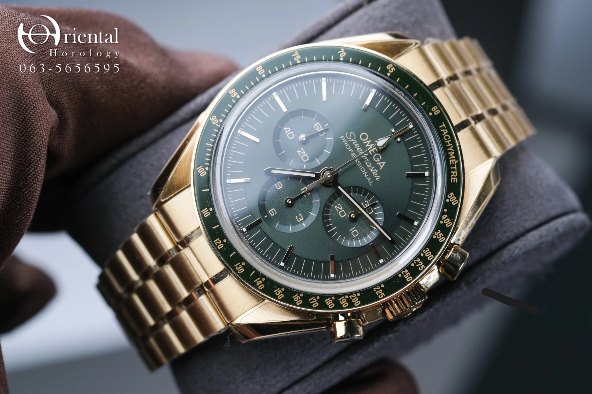 🌟 นาฬิกาในตำนานอีกหนึ่งรุ่นของโลกและการศึกษาทางอวกาศ ซึ่งเคยเป็นส่วนหนึ่งของการลงจอดบนดวงจันทร์ทั้ง 6 ครั้งและขึ้นชื่อเรื่องความเที่ยงตรงและการป้องกันค่าสนามแม่เหล็กได้สูงสุดๆ เรือนนี้มาในขนาด 42 mm มาพร้อมวัสดุ 18K Moonshine™ gold เป็นสีเอกลักษณ์เฉพาะที่มีความหรูหราสะดุดตา ทองตันๆทั้งเรือน ตัดกับขอบหน้าปัดเซรามิกสีเขียวเข้มพร้อม Ceragold™ tachymeter scale และหน้าปัด sun-brushed green PVD แมทช์กันให้ลุคที่ดูเท่ห์และโดดเด่นสุดๆ มาพร้อมหลักบอกเวลาและชุดเข็มพรายน้ำ แต่งตัวแมทช์ง่ายในหลายโอกาส สวมใส่สวยขึ้นข้อสุดๆครับ