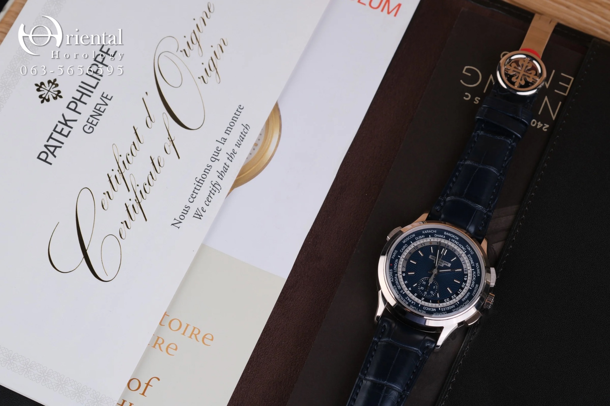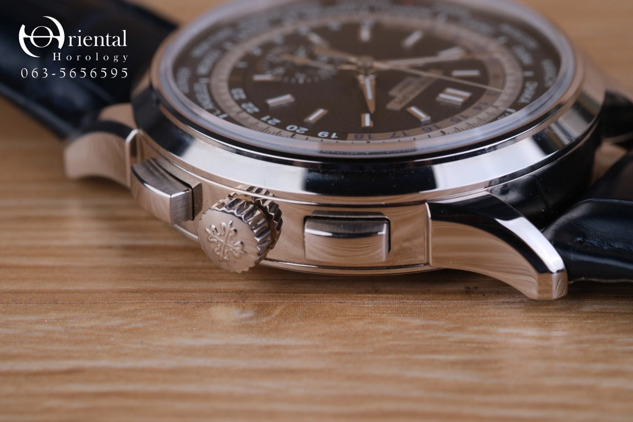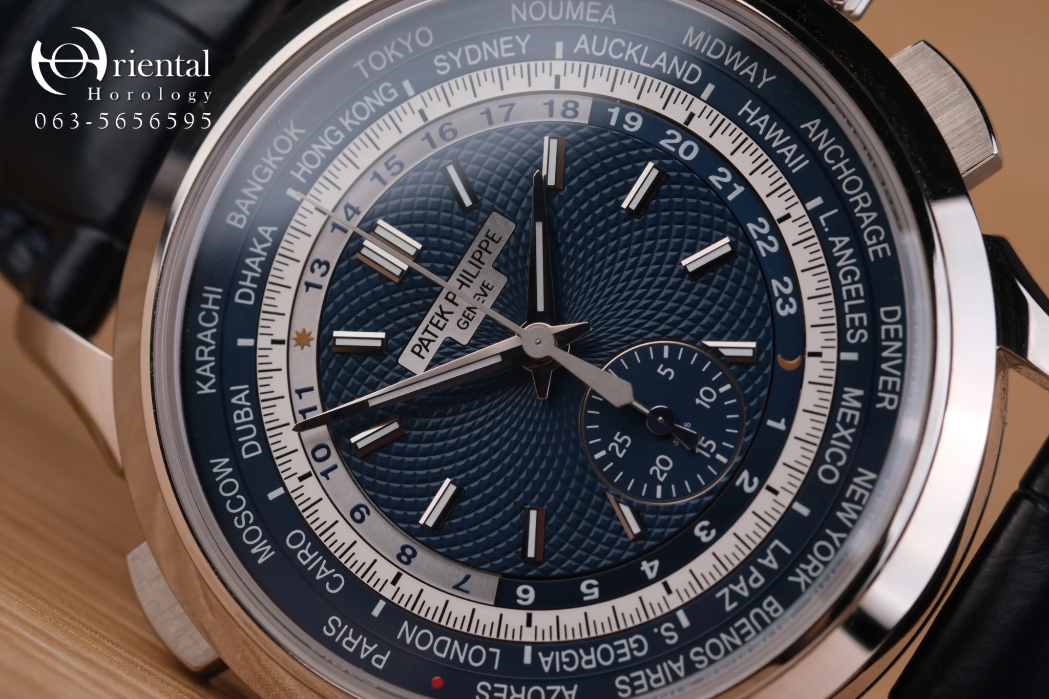 🌟 ตัวเรือน 18K White Gold ขนาด 39.5 mm. มาพร้อมหน้าปัดสุดเอกลักษณ์กับวงแหวนแสดงชื่อเมืองทั้ง 24 เมือง และพื้นลายเส้นสาน เป็นการนำแบบลวดลายมาจากหน้าปัดนาฬิกาที่เก็บรักษาไว้ในพิพิธภัณฑ์ของ Patek Philippe มาพร้อมกลไก Automatic สำรองพลังงาน 55 ชม. ฟังก์ชัน World Time แสดงเวลา 24 ไทม์โซน และ Chronograph flyback หลังเปลือยโชว์ความงดงามของกลไก จับคู่มากับสายหนังจระเข้สีน้ำเงิน ให้ลุคเรียบหรู ดูหล่อสุดๆครับ